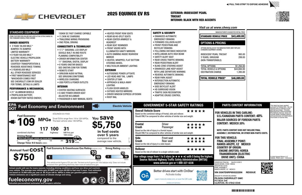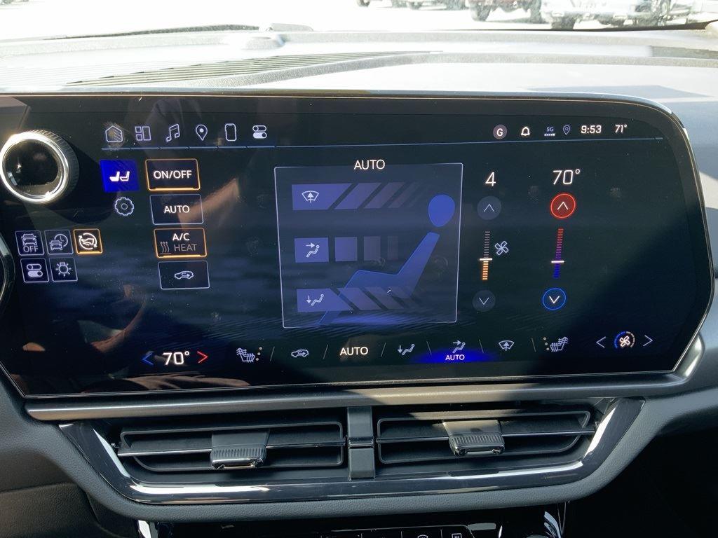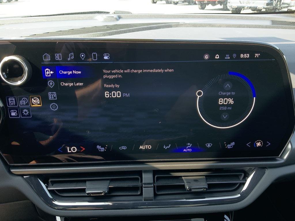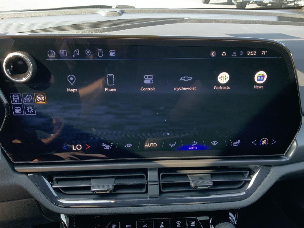 Electric drive unit, primary, 1 motor, integrated inverter, park system, magnets, 76F, AC Charging, 11.5 kW capable, Wheels, 21 (53.3 cm) Black painted aluminum, 5G Wi-Fi Hotspot capable (Terms and limitations apply. See onstar.com or dealer for details.), Seat adjuster, driver 8-way power, Driver Information Center, 11 diagonal display, Remote Start, smartphone app, Power outlets, (2), 12-volt, lower instrument panel and cargo area, auxiliary, Google Automotive Services capable, Navigation System through Google built-in compatibility (select service plan required, terms and limitations apply), Enhanced Automatic Emergency Braking, Intersection Automatic Emergency Braking, Reverse Automatic Braking, Front Pedestrian and Bicyclist Braking, Forward Collision Alert, Following Distance Indicator, Lane Keep Assist with Lane Departure Warning, enhanced, Rear Pedestrian Alert, Blind Zone Steering Assist, Side Bicyclist Alert