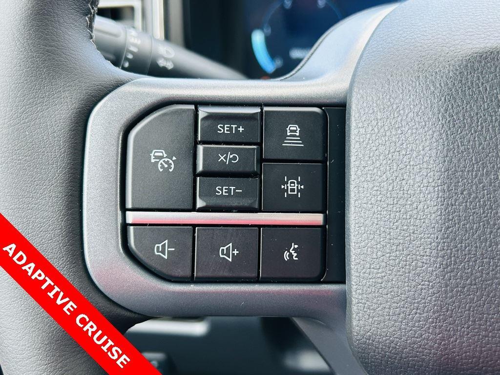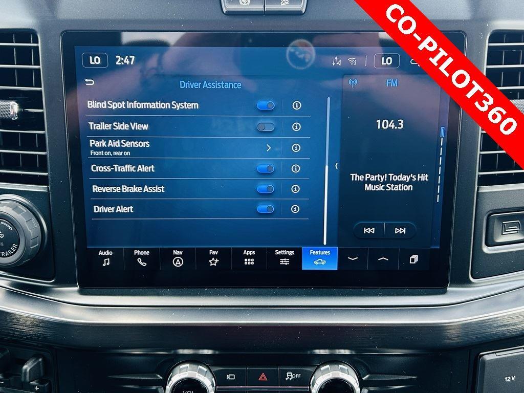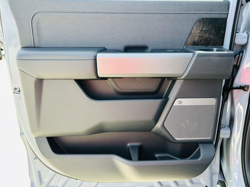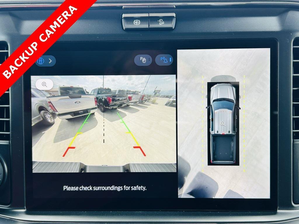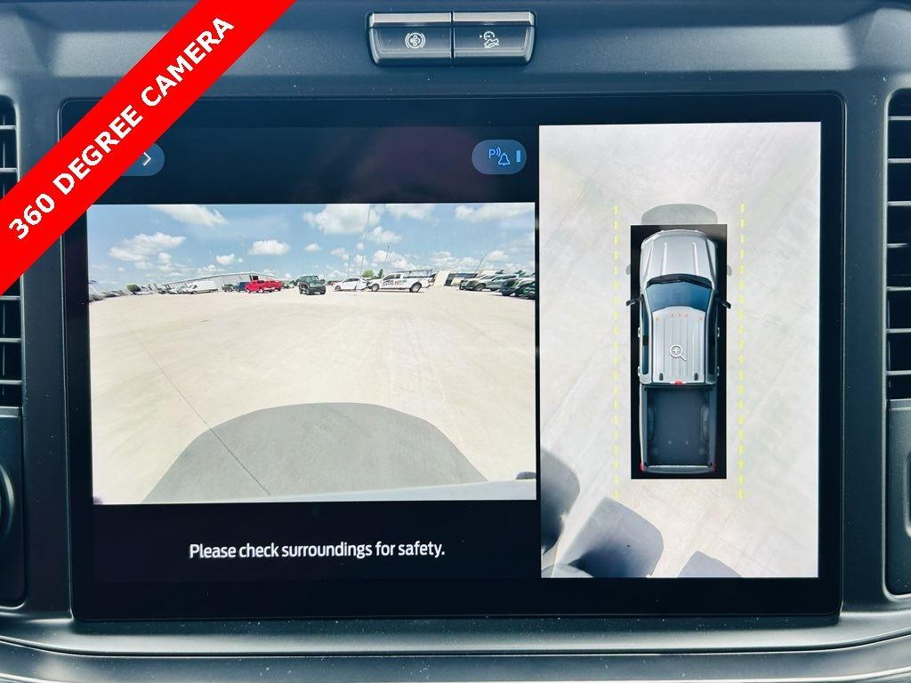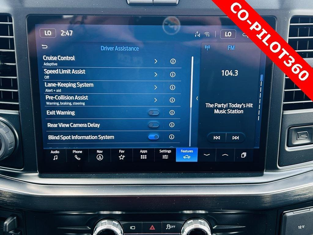 - Includes Ford Co-Pilot360 Assist 2.0, 360 degree camera, adaptive cruise control with stop-and-go and predictive speed assist, lane centering, automatic high beam, blind spot information system (BLIS) with cross-traffic alert and trailer coverage, front and rear parking sensors, lane-keeping alert, lane-keeping aid, driver alert, intersection assist, pre-collision assist with automatic emergency braking, forward collision warning with pedestrian detection, post-collision braking, reverse brake assist, head-up display, 4-way adjustable headrests, B&O 1080-watt sound system with 13 speakers and subwoofer, HD radio, power running boards, tailgate step, Pro Trailer Backup Assist, Pro Trailer Hitch Assist, trailer reverse guidance, and power-sliding glass with defrost and privacy glass.
