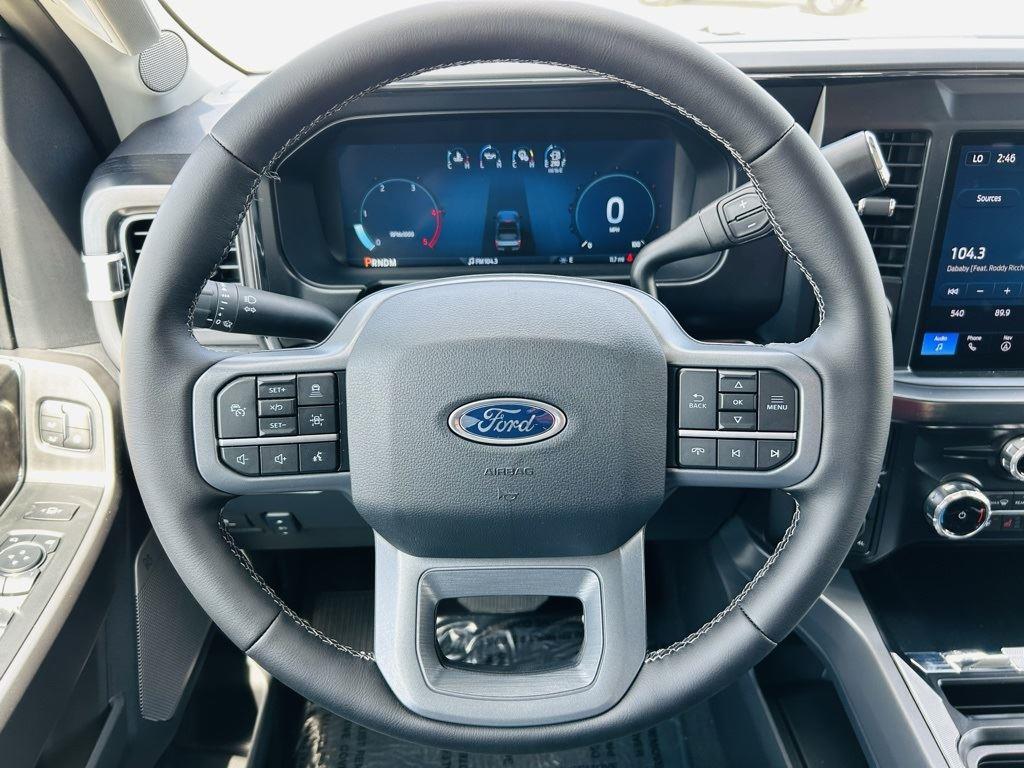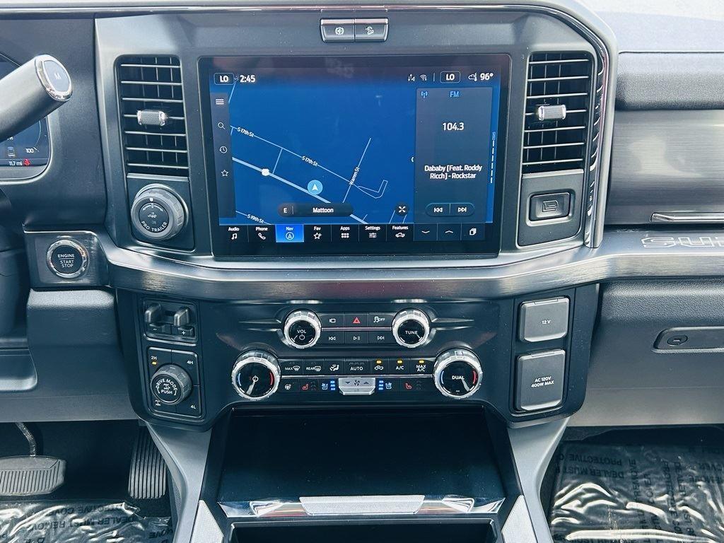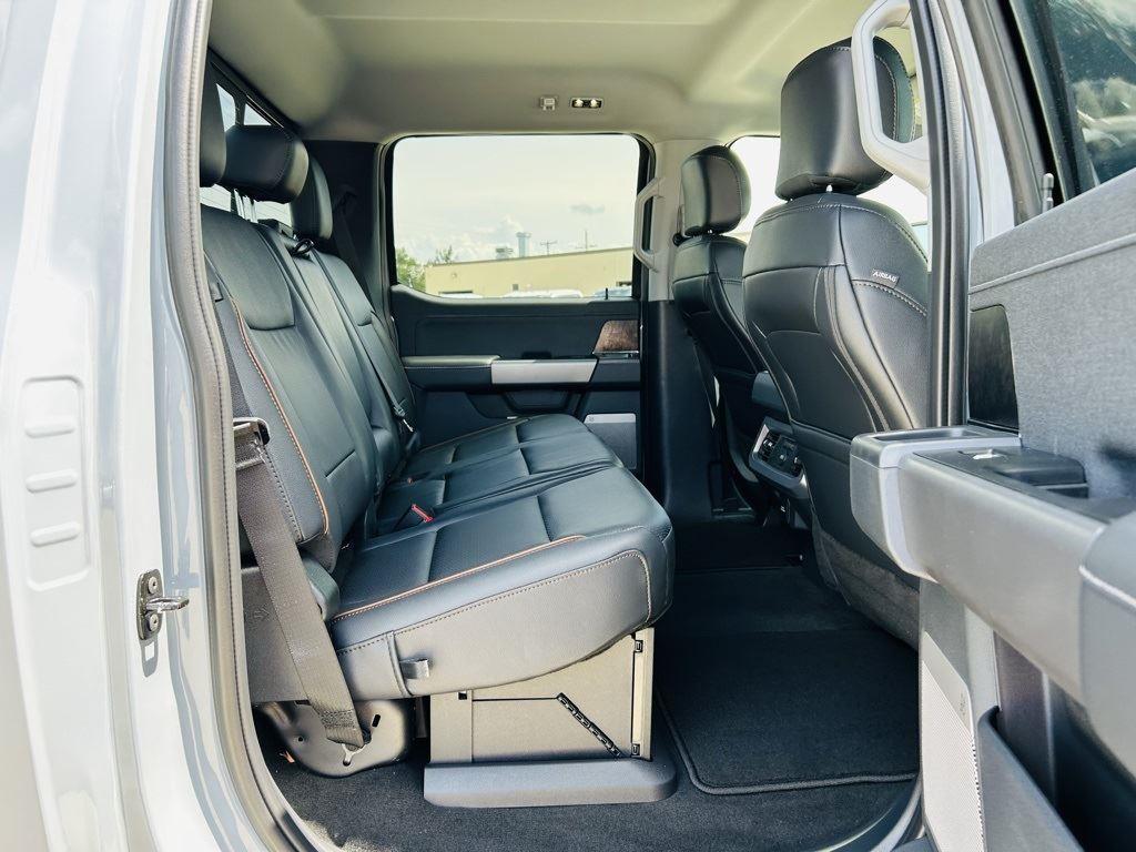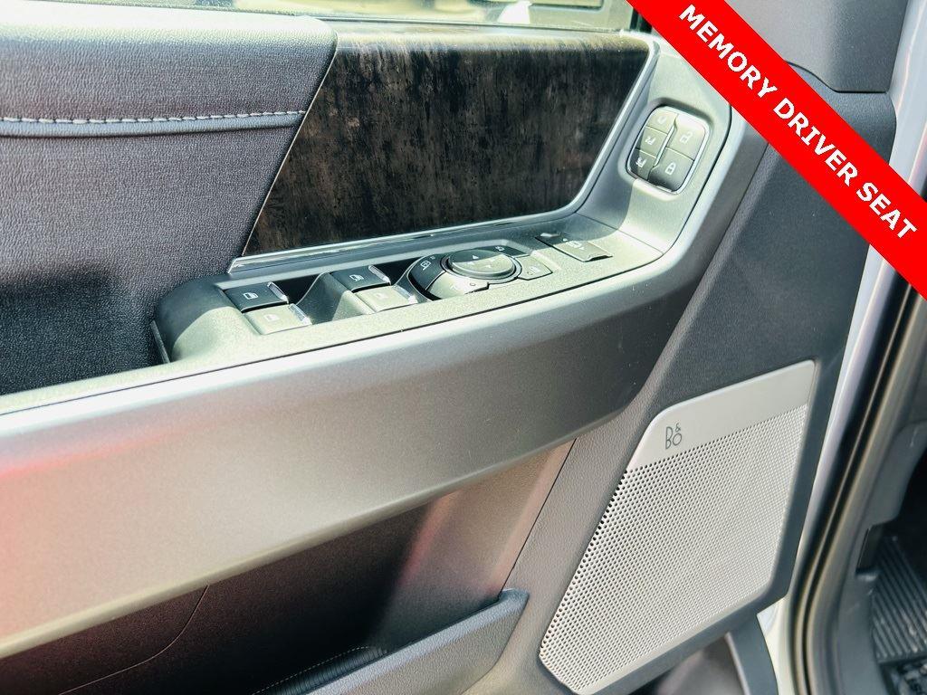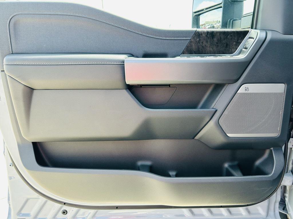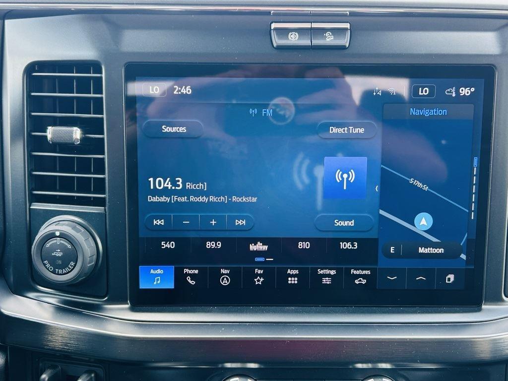 - Includes Ford Co-Pilot360 Assist 2.0, 360 degree camera, adaptive cruise control with stop-and-go and predictive speed assist, lane centering, automatic high beam, blind spot information system (BLIS) with cross-traffic alert and trailer coverage, front and rear parking sensors, lane-keeping alert, lane-keeping aid, driver alert, intersection assist, pre-collision assist with automatic emergency braking, forward collision warning with pedestrian detection, post-collision braking, reverse brake assist, head-up display, 4-way adjustable headrests, B&O 1080-watt sound system with 13 speakers and subwoofer, HD radio, power running boards, tailgate step, Pro Trailer Backup Assist, Pro Trailer Hitch Assist, trailer reverse guidance, and power-sliding glass with defrost and privacy glass.