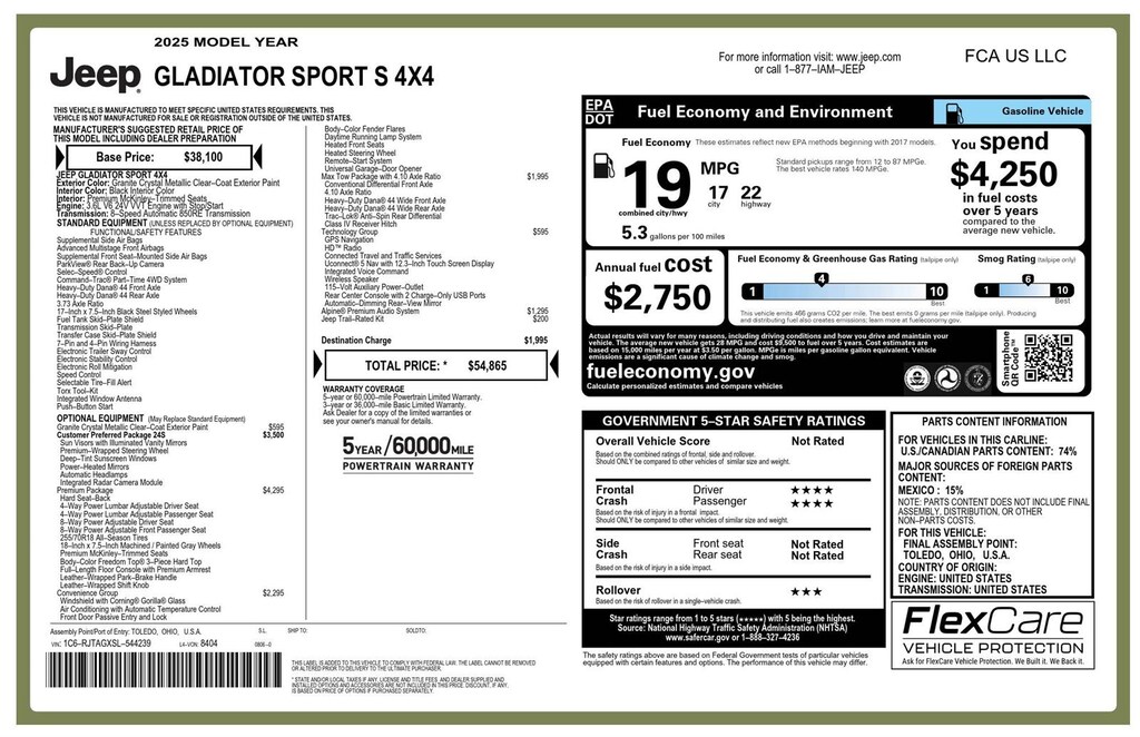 2025 National Holiday Select Inventory Bonus Cash Offer limited to on oldest 20% of eligible vehicles in dealer inventory tagged with the sales code 4EH. Contact dealer for details. Must take delivery by 01/05/2026. (40CSY) ($4250), 2025 National Bonus Cash Contact dealer for details. Must take delivery by 01/05/2026. (25CSA) ($2250), 2025 National Holiday Select Inventory Bonus Cash Offer limited to on oldest 20% of eligible vehicles in dealer inventory tagged with the sales code 4EH. Contact dealer for details. Must take delivery by 01/05/2026. (40CSY) ($2000) Want us to come to you? No problem! In case we missed a picture or a detail you would like to see on this new vehicle we are happy to send you A PERSONAL VIDEO walking around the vehicle focusing on the closest details that are important to you. We can jump on a video call or send it directly to you via text or email. We look forward to hearing from you.