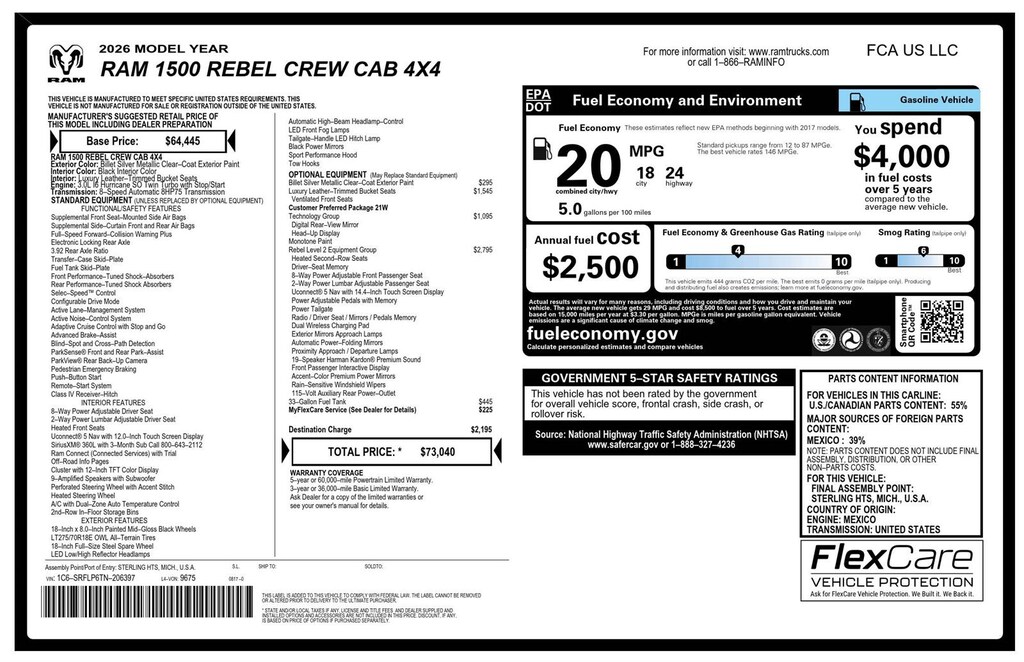 2026 Ram 1500 Rebel Truck Straight 6 Cylinder Engine