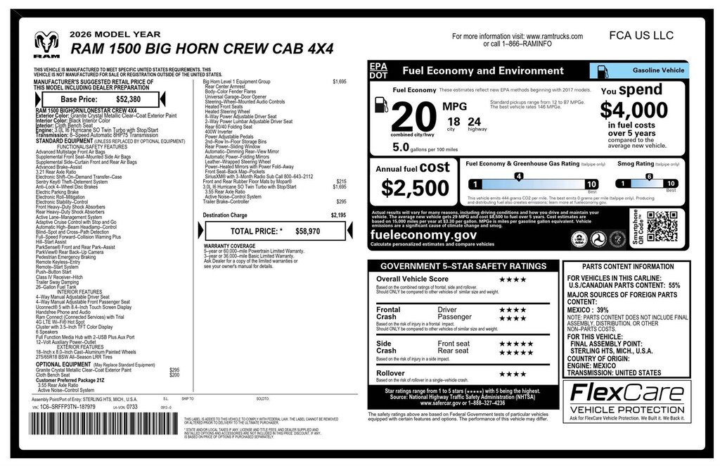 2026 National Retail Consumer Cash Contact dealer for details. Must take delivery by 01/05/2026. (26CT1) ($3500), 2026 National Retail Consumer Cash Contact dealer for details. Must take delivery by 01/05/2026. (26CT1) ($3500) Want us to come to you? No problem! In case we missed a picture or a detail you would like to see on this new vehicle we are happy to send you A PERSONAL VIDEO walking around the vehicle focusing on the closest details that are important to you. We can jump on a video call or send it directly to you via text or email. We look forward to hearing from you.
