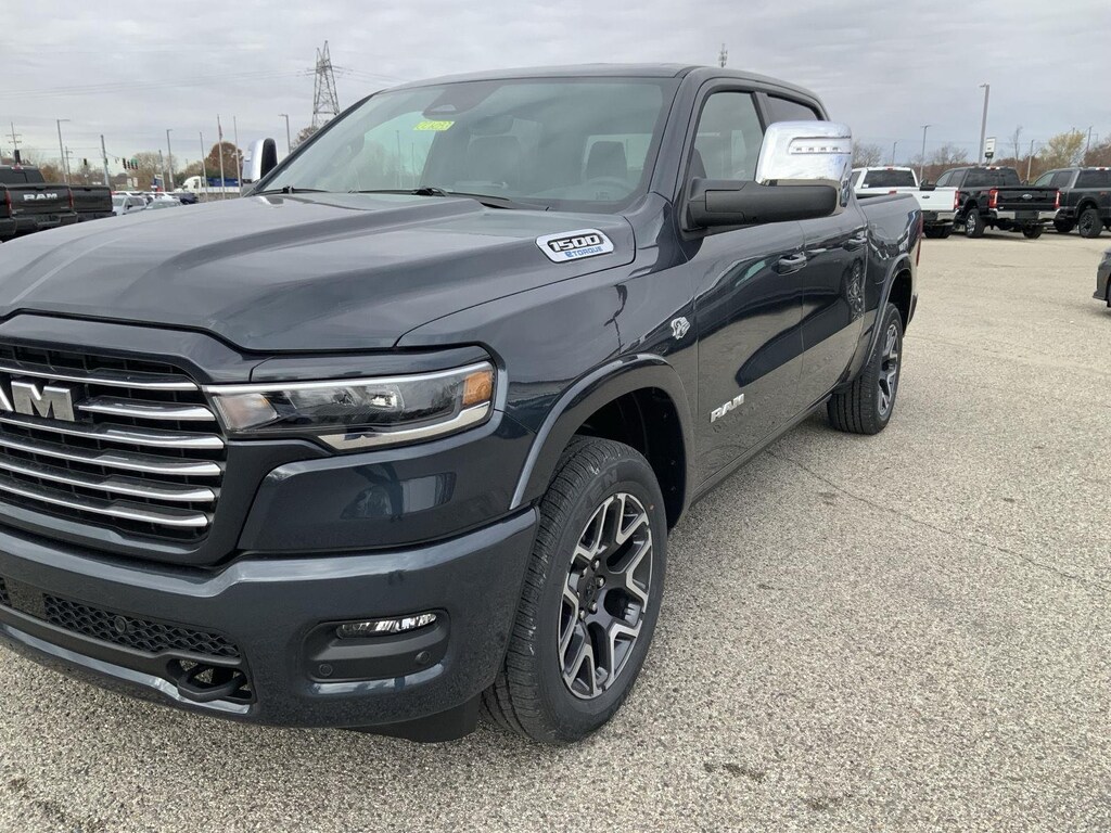 ENGINE: 5.7L V8 HEMI MDS VVT ETORQUE, TRANSMISSION: 8-SPEED AUTOMATIC (8HP75), QUICK ORDER PACKAGE 27H LARAMIE, 3.92 REAR AXLE RATIO, WHEELS: 20 X 9 PREMIUM PAINT/POLISH, TIRES: 275/55R20 ALL SEASON LRR, FORGED BLUE METALLIC, BLACK, LEATHER TRIMMED BUCKET SEATS, TRAILER TOW GROUP, LARAMIE LEVEL 2 EQUIPMENT GROUP, LARAMIE PREFERRED PACKAGE, MYFLEXCARE SERVICE PLAN, TRAILER BRAKE CONTROL, 33 GALLON FUEL TANK, DUAL-PANE PANORAMIC SUNROOF, CHROME POWER-FOLD TRAILER TOW MIRRORS, POWER DEPLOYABLE RUNNING BOARDS, RADIO: UCONNECT 5 NAV W/14.4 DISPLAY, MOPAR FRONT & REAR RUBBER FLOOR MATS